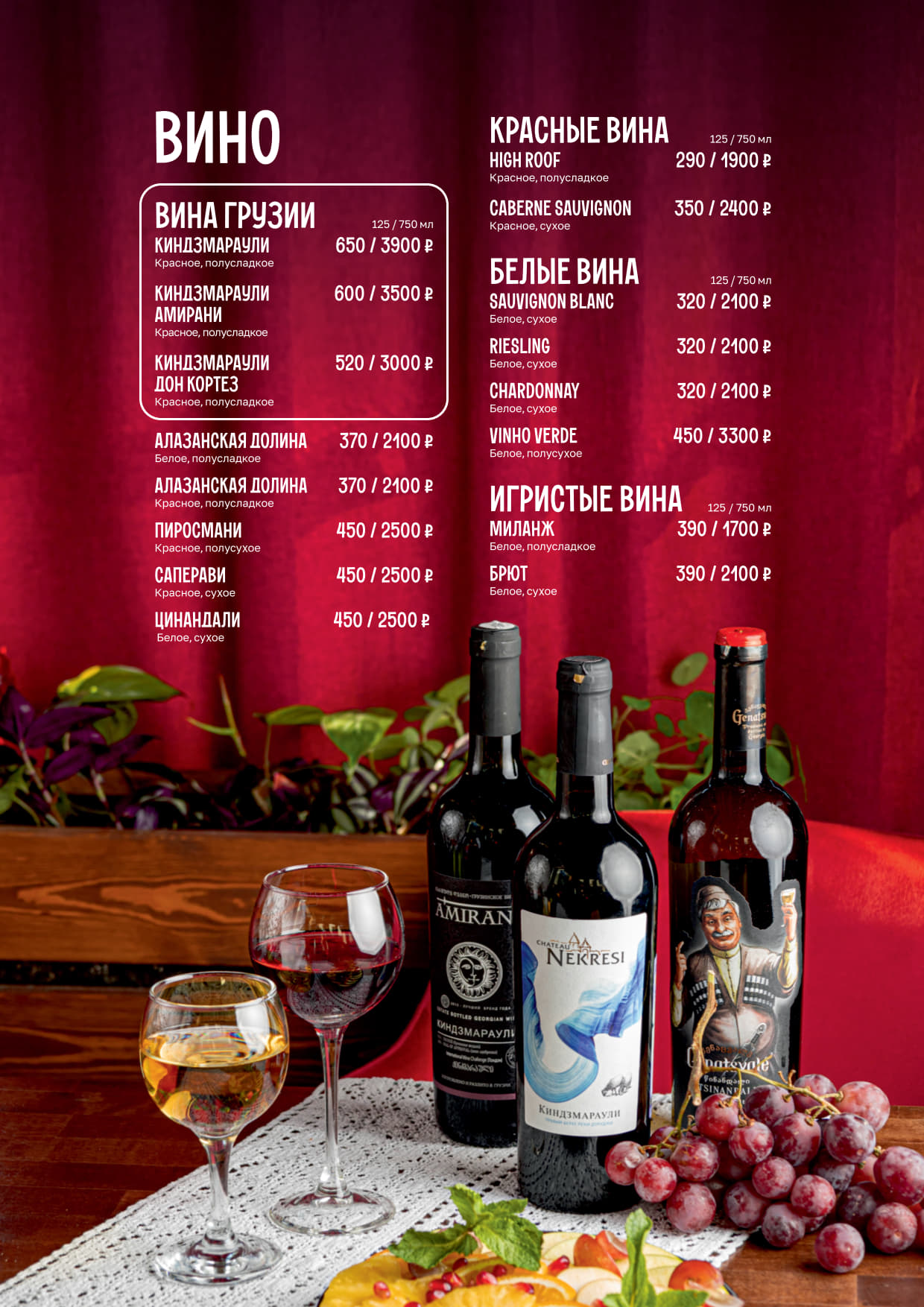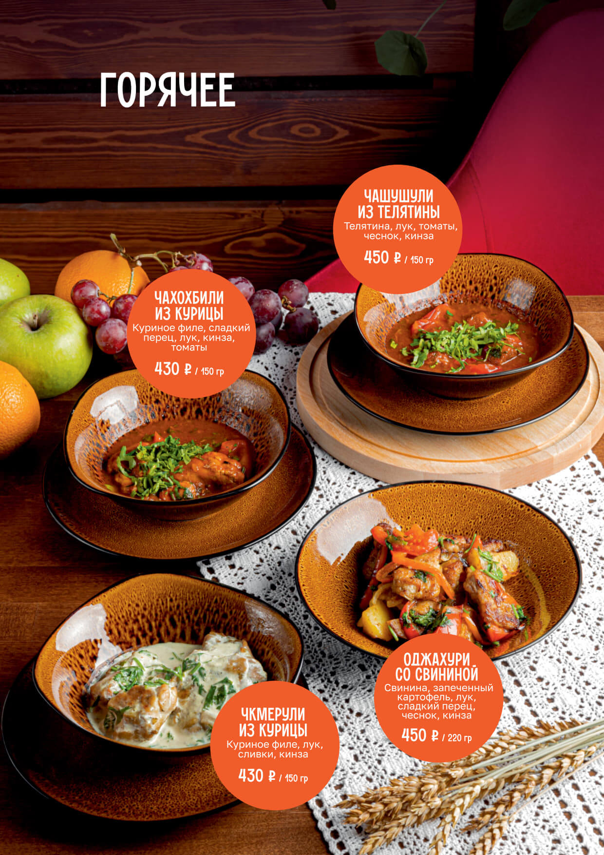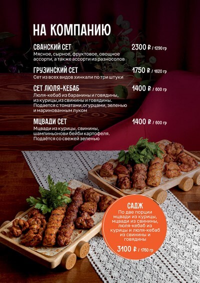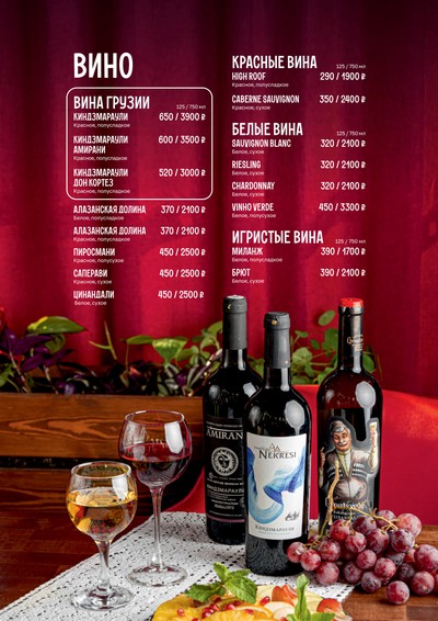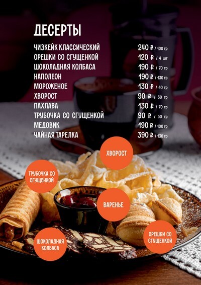 Меню ресторана